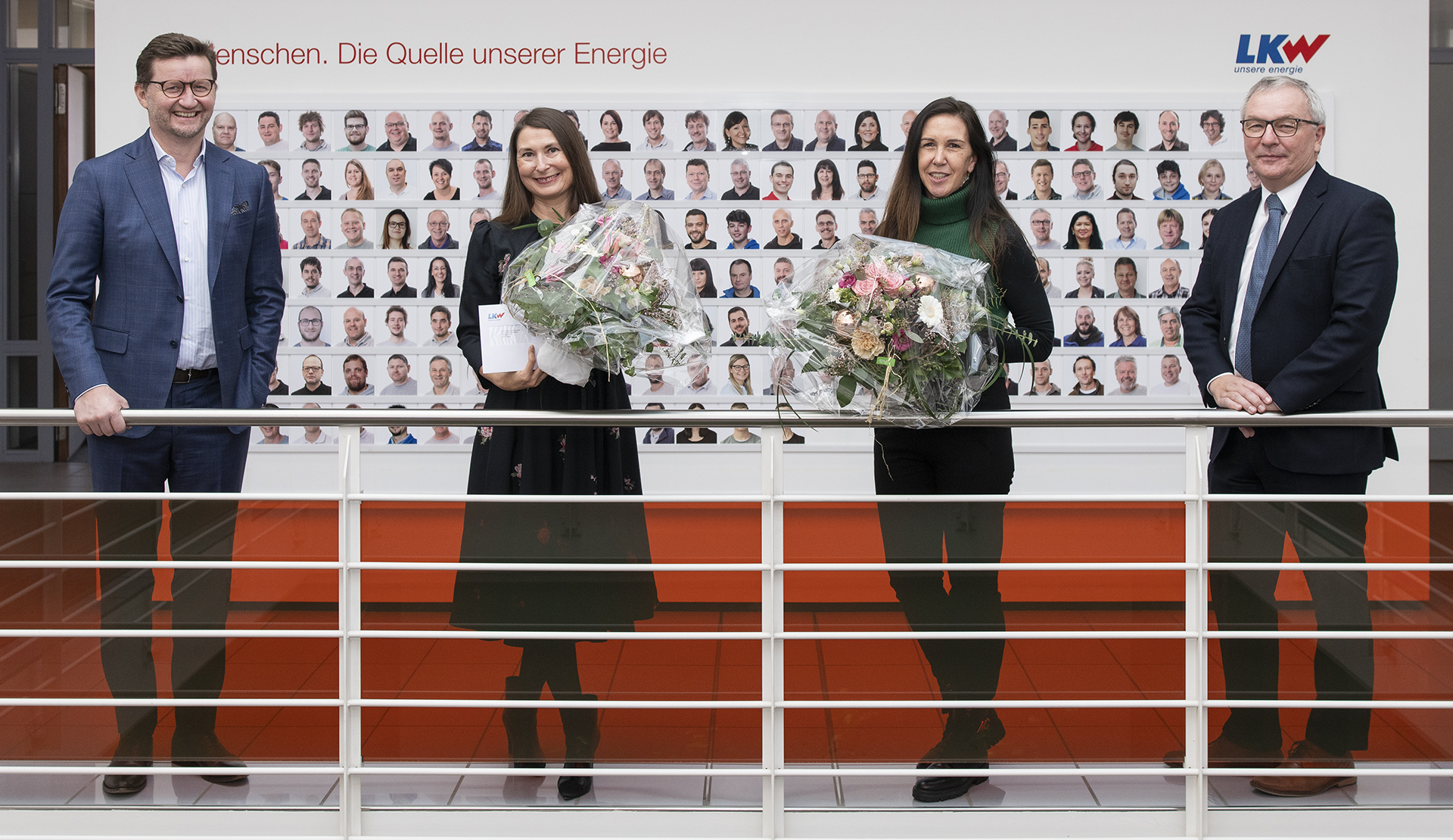 Philipp Elkuch (Verwaltungsratspräsident LKW) Jasmine Andres-Meier (Leiterin Frauenhaus Liechtenstein), Jacqueline Vogt (Präsidentin Stiftung Liachtbleck), Gerald Marxer (Vorsitzender der Geschäftsleitung LKW)